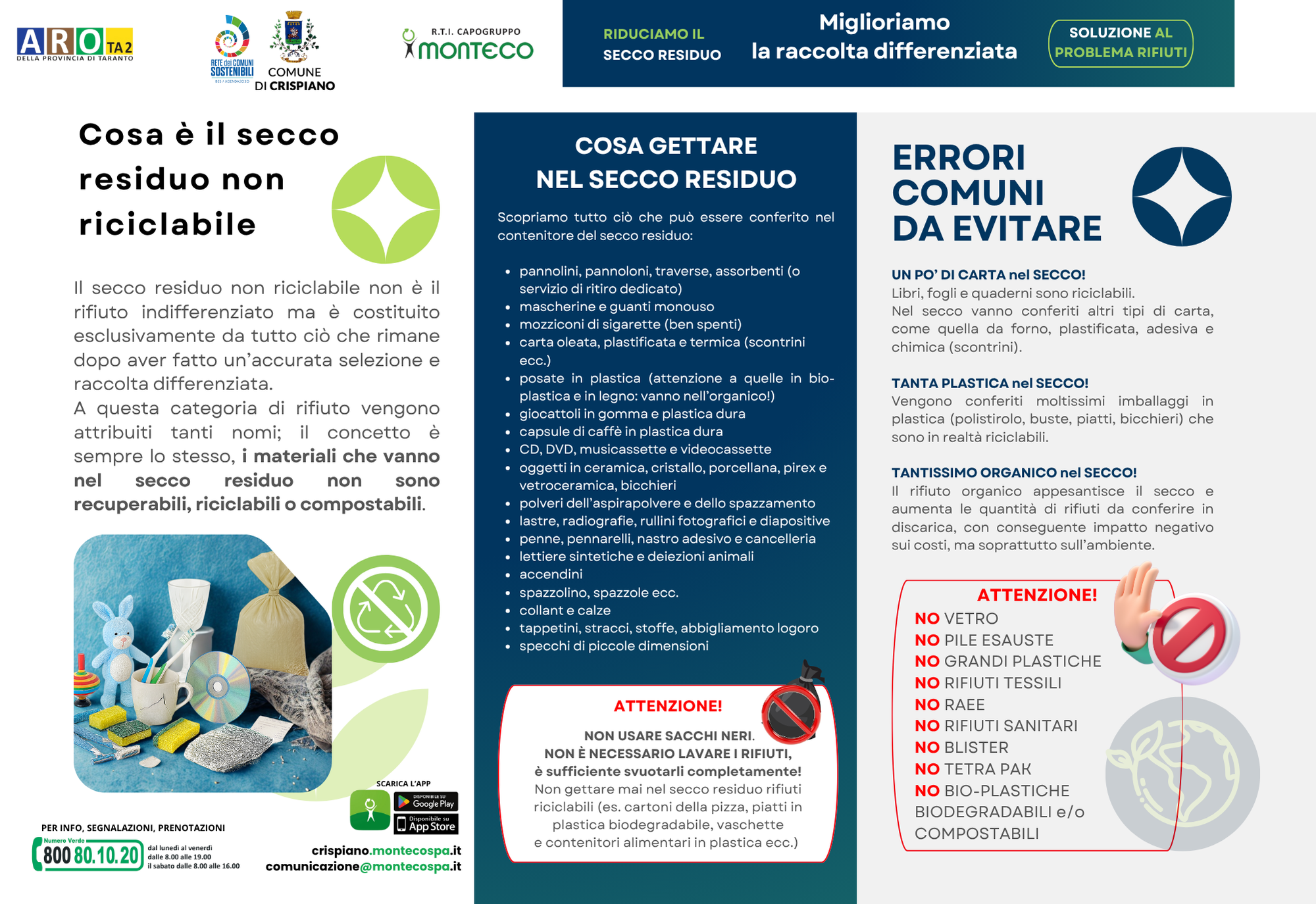 Nei prossimi giorni sarà distribuito a tutte le utenze il nuovo volantino informativo sul “Secco Residuo Non Riciclabile”.